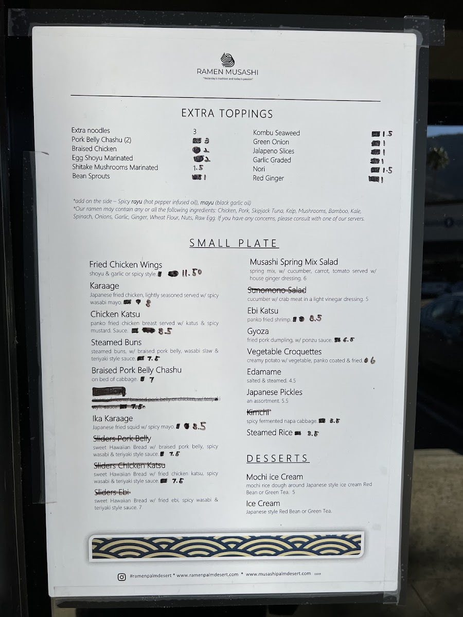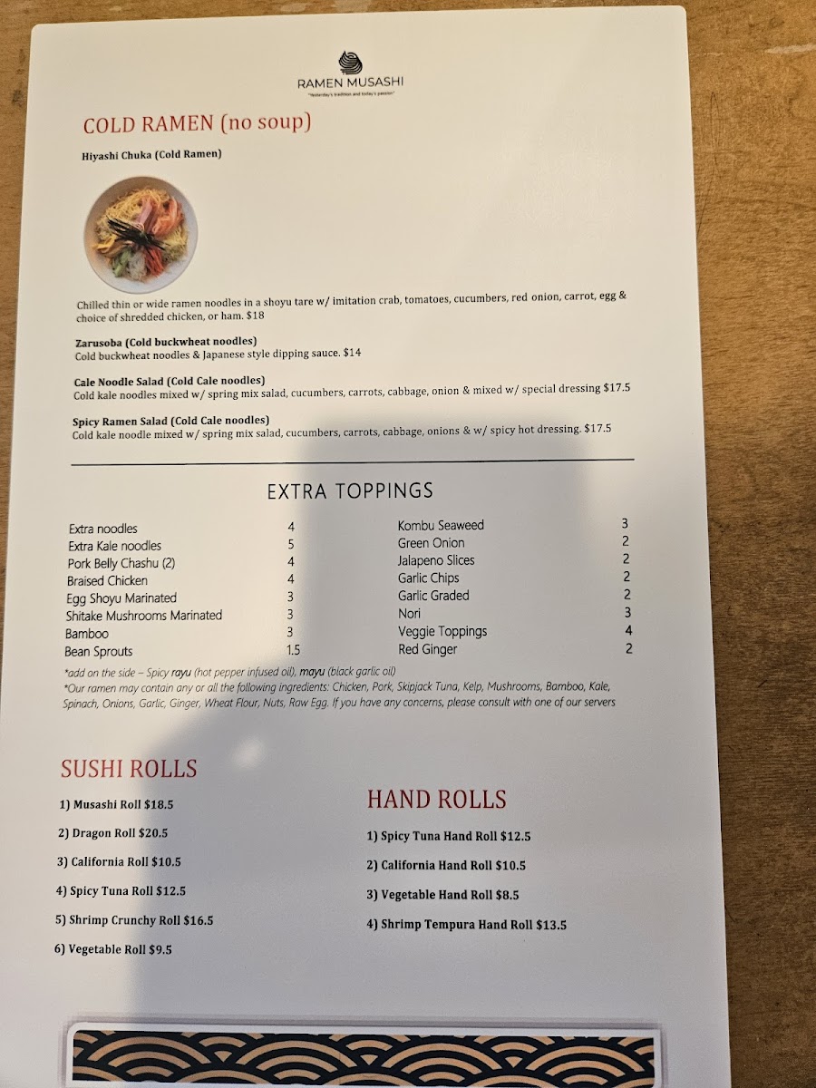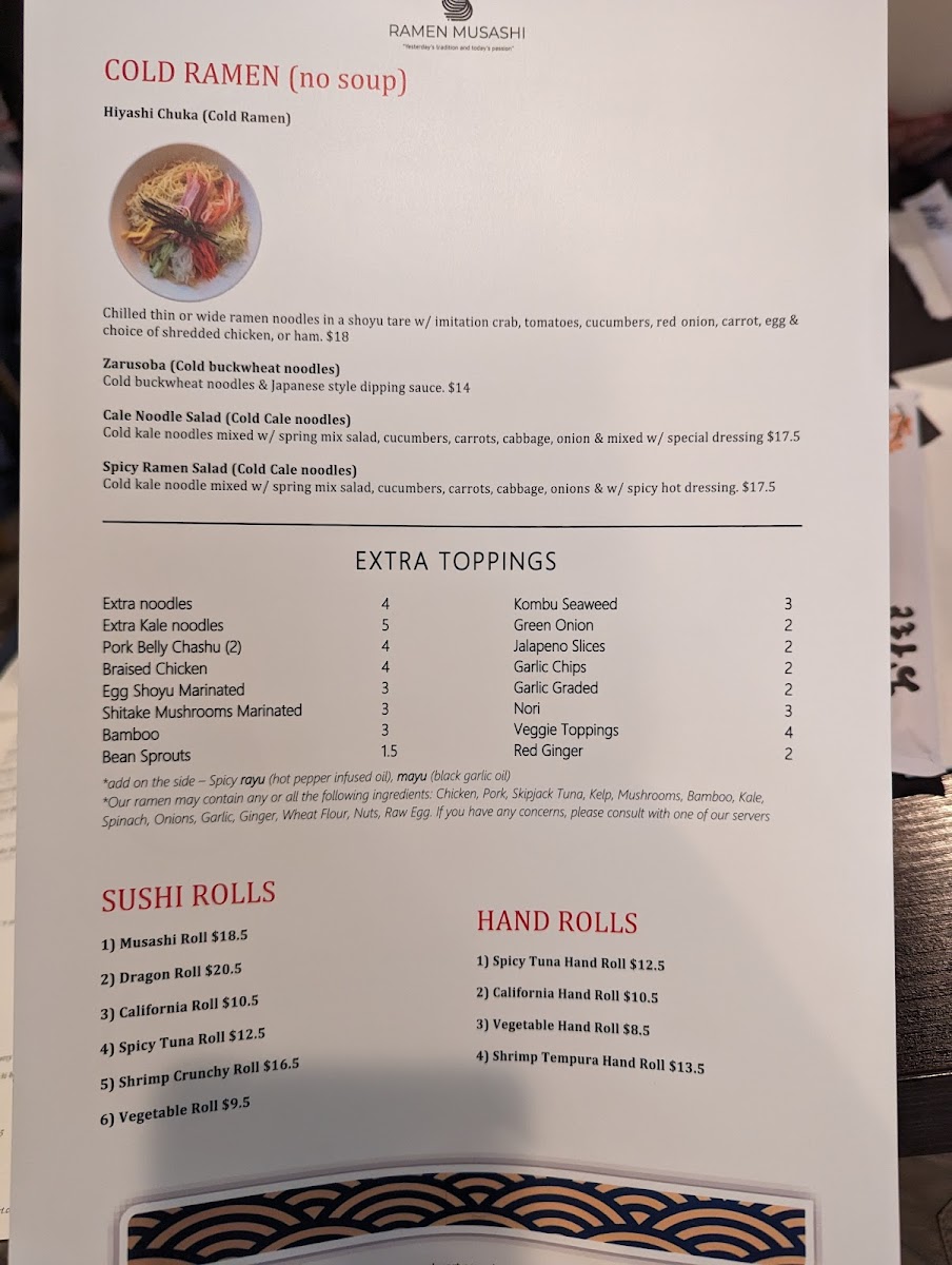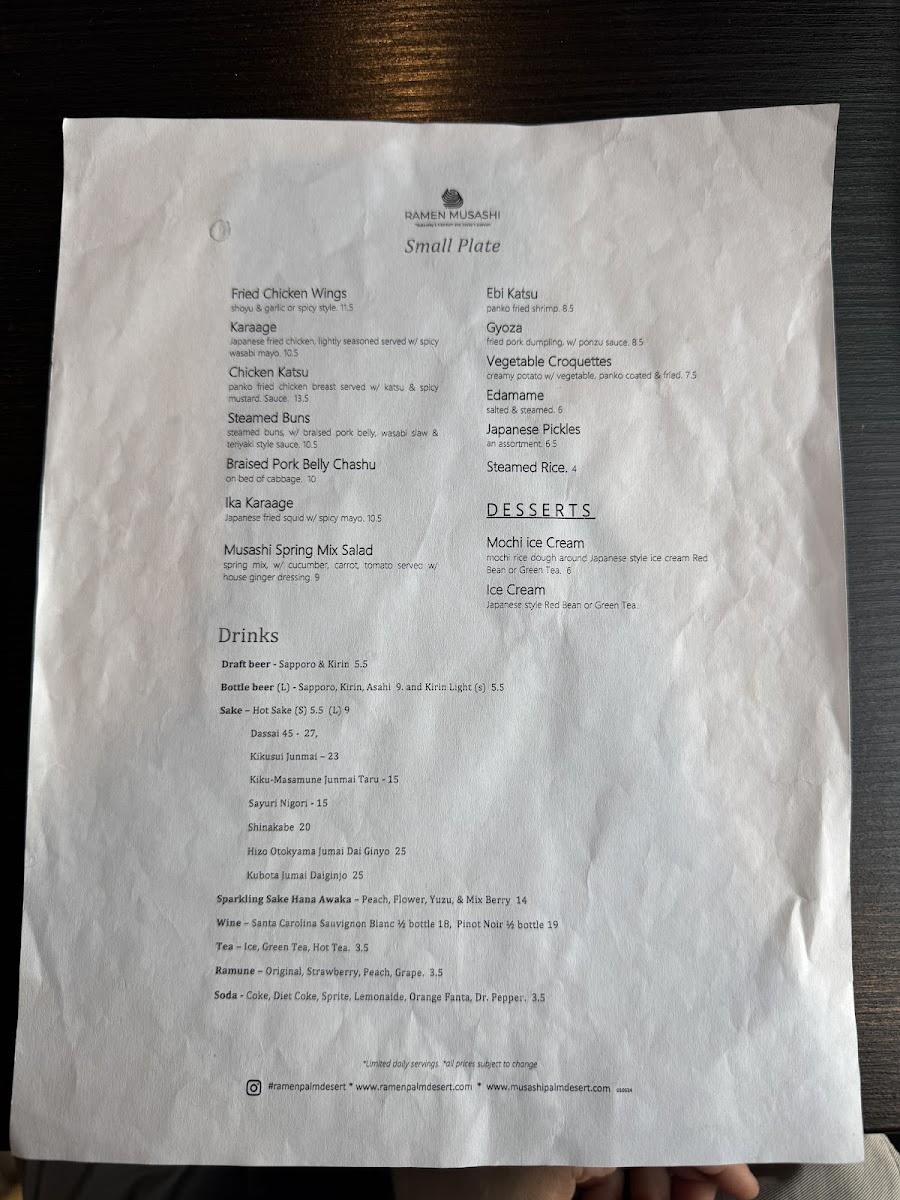 At Ramen Musashi Menu, you're in for a comforting and flavorful experience that will leave you craving more. Located in the heart of Palm Desert, CA, this spot offers an array of traditional and innovative ramen dishes, crafted with the freshest ingredients and bold flavors. From rich, savory broths to perfectly tender noodles, every bite is a satisfying journey for your taste buds. Whether you're a ramen aficionado or a newcomer to this beloved dish, you'll find something to enjoy on the menu. There’s a dish for everyone, from classic miso ramen to creative fusion options. Each bowl is made with care, delivering that perfect balance of taste and texture that defines a great ramen experience.